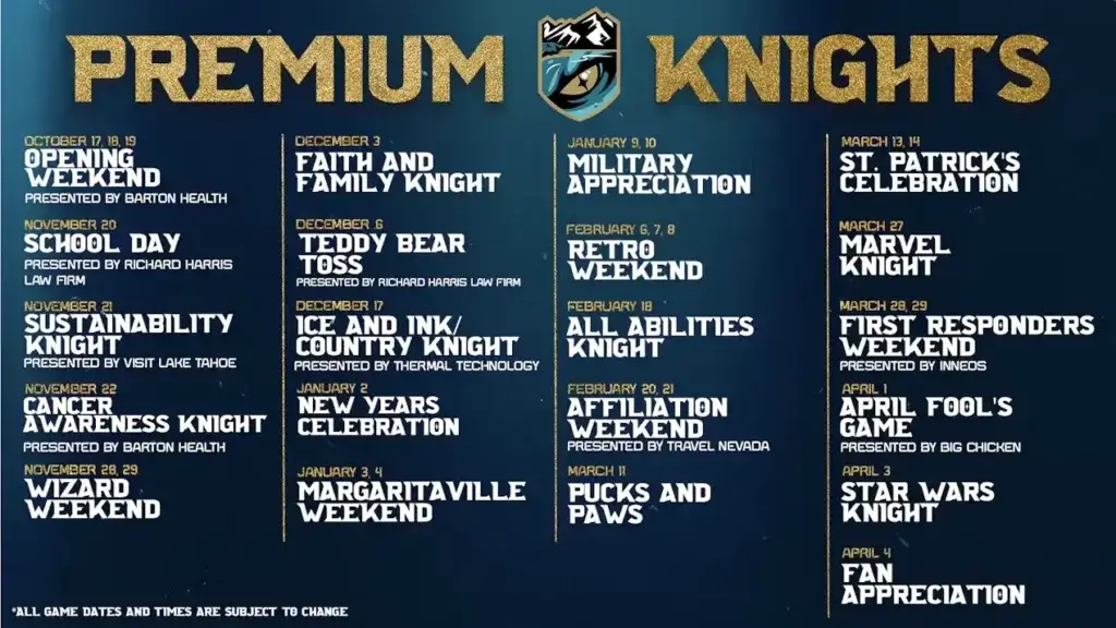 Following an incredibly successful inaugural season that featured a playoff berth and a first-round sweep, the Tahoe Knight Monsters, proud ECHL affiliate of the NHL’s Vegas Golden Knights and the AHL’s Henderson Silver Knights, have released their schedule for the 2025-26 season.