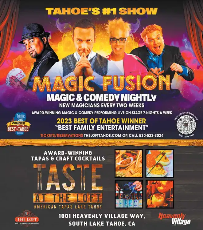 The Loft is also home to Lake Tahoe’s #1 show in our theatre, Magic Fusion, featuring award-winning world-class magicians from around the world, which will reopen during Phase 3 approvals by our local and state officials. Please visit our social media platforms at @thelofttahoe or our website for the most up-to-date information.