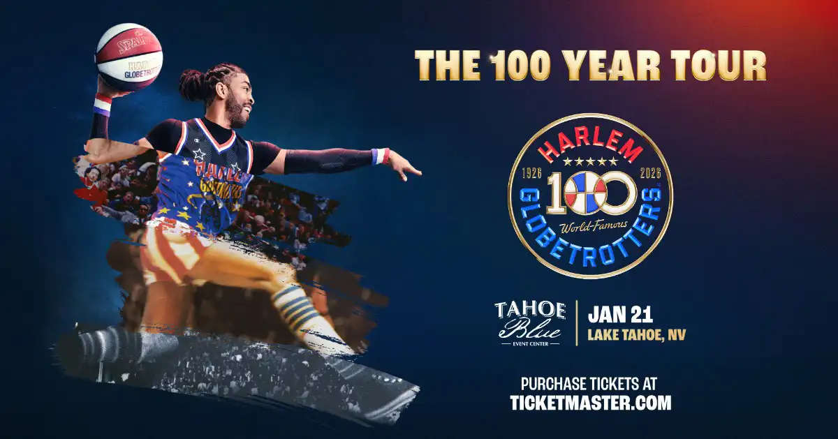 Wednesday, January 21, 2026, 7:00 pm, The original Harlem Globetrotters 100 Year Tour at the Tahoe Blue Event Center. See the Globetrotter stars LIVE as they DRIBBLE, SPIN, SLAM, and DUNK their way past their relentless rivals, the Washington Generals! You’ll be amazed by new levels of mind-blowing trick shots, expert ball-handling skills, and BIG LAUGHS with unrivaled opportunities for pre-game, post-game and in-game fan engagement!