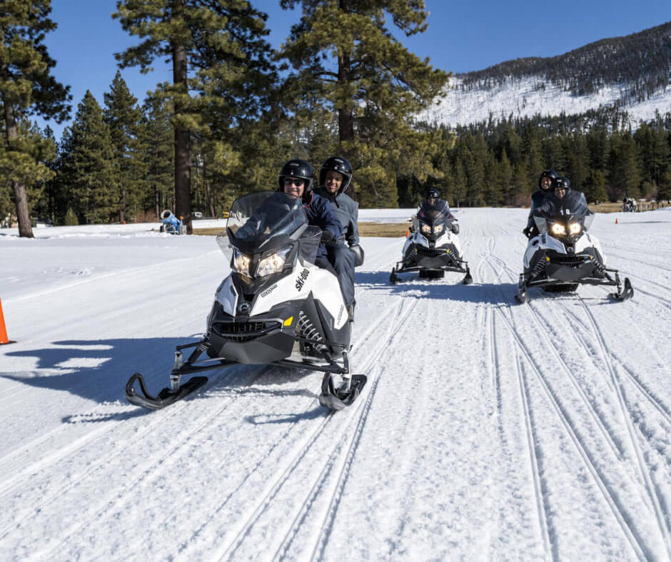 Another great family activity to consider when visiting Lake Tahoe is snowmobiling. If you have a few hours to enjoy being outside, we HIGHLY recommend taking the guided tour from Zephyr Cove. The two-hour tour provides panoramic views of Lake Tahoe’s cobalt-blue waters that very few others get a chance to see during this time of year. For those with only a bit of time, you can rent a snowmobile for 30 minutes and take it on a racetrack, walking distance from downtown. For more ideas on how to saddle up, head over to Snowmobiling in South Lake Tahoe.