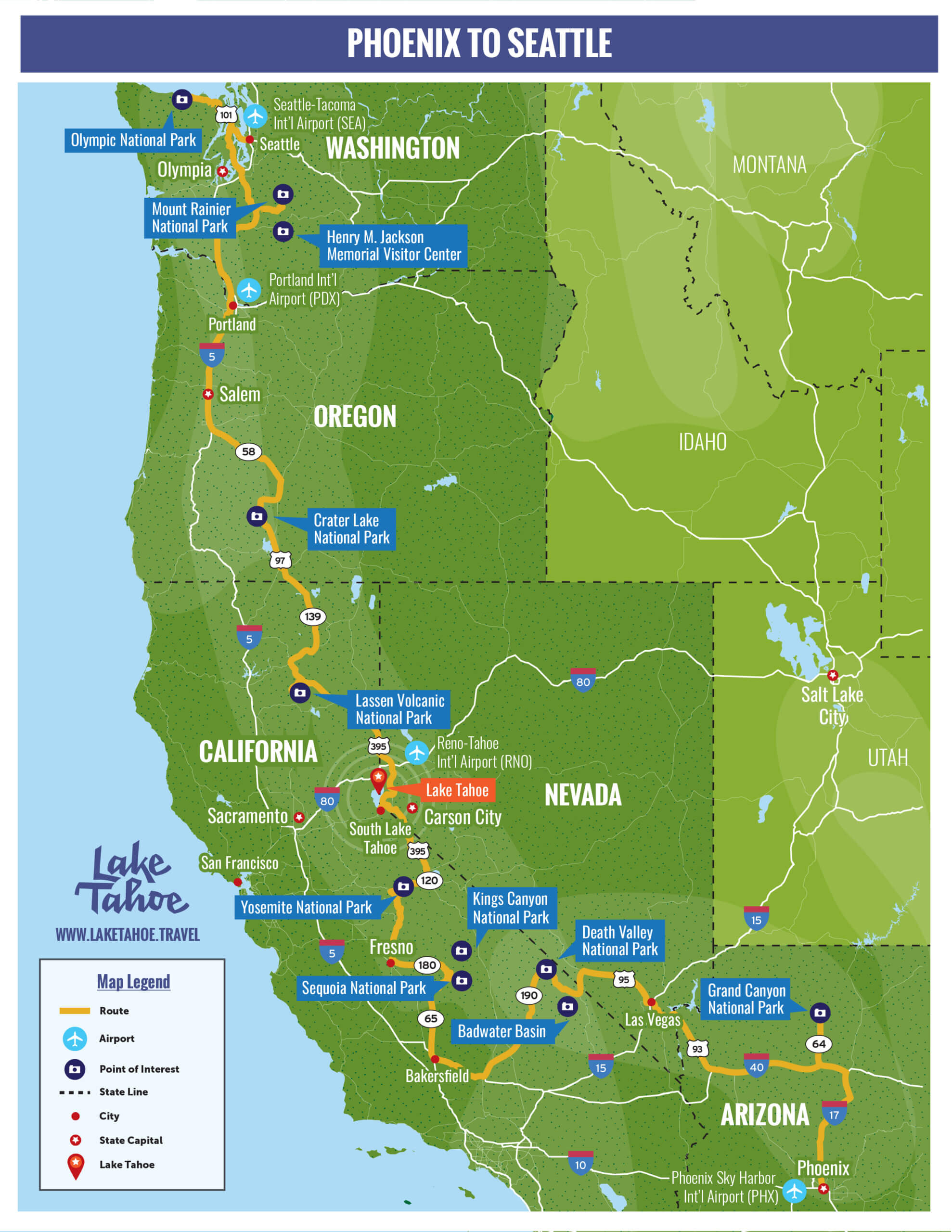 Best of the West Road Trip: A Phoenix To Seattle Road Trip Through South Lake Tahoe