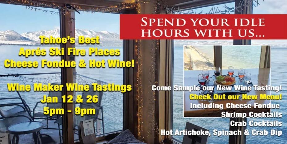 Visitors to The Idle Hour can enjoy beverages, views, and shopping every day of the week, but those seeking Lake Tahoe nightlife will find event highlights every week as well. Special tastings with favorite wineries take place from 5 to 7 p.m. weekly. Be sure to check out the event schedule, which is updated frequently. Every Friday and Saturday evening from 5 to 8 p.m., guests can enjoy free live music from pianist Kris Diehl in the lounge area.